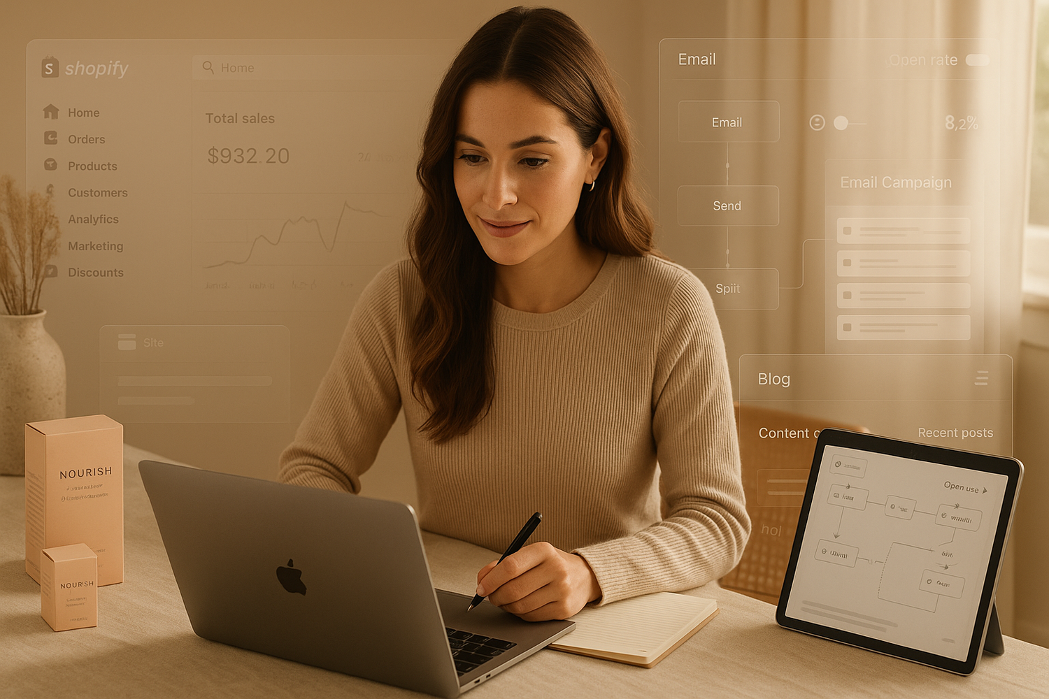 For brands rooted in wellness, health, or ritual, we create systems that connect: optimized Shopify sites, flows that nurture, and messaging that moves.